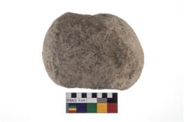 | Description / विवरण | A partially broken specimen of a oval shaped mueller stone with oval section. |