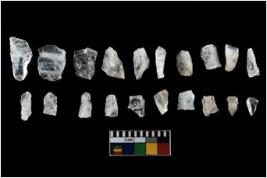 | Description / विवरण | The total number of specimens are n 20 quartz.The blades have a flat dorsal surface, and double rigdes going parallel to its length. Some of the microliths have steep retouch at their tip. |