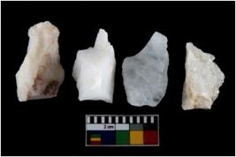 | Description / विवरण | There are n-4 of intact utilized flakes made up of Quartz. Some of them have bulge of percussion and some are flat flakes. |