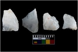 | Description / विवरण | There are n-4 of intact utilized flakes made up of Quartz. Some of them have bulge of percussion and some are flat flakes. |