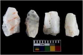 | Description / विवरण | There are n-4 of intact utilized flakes made up of Quartz. Some of them have bulge of percussion and some are flat flakes. |