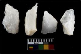 | Description / विवरण | There are n-4 of intact utilized flakes made up of Quartz. Some of them have bulge of percussion and some are flat flakes. |