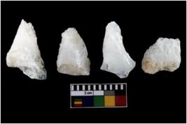 | Description / विवरण | There are n-4 of intact utilized flakes made up of Quartz. Some of them have bulge of percussion and some are flat flakes. |