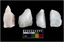 | Description / विवरण | There are n-4 of intact utilized flakes made up of Quartz. Some of them have bulge of percussion and some are flat flakes. |
