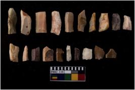 | Description / विवरण | There 20 no. of blades of material chert. Some of them are points. All the blades are retouched and having sharp edges. |