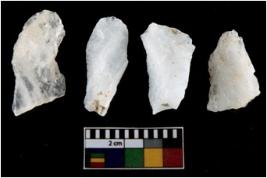 | Description / विवरण | There are n-4 of intact utilized flakes made up of Quartz. Some of them have bulge of percussion and some are flat flakes. |