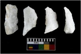 | Description / विवरण | There are n-4 of intact utilized flakes made up of Quartz. Some of them have bulge of percussion and some are flat flakes. |