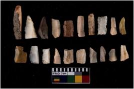| Description / विवरण | There 20 no. of blades of material chert. Some of them are points. All the blades are retouched and having sharp edges. |