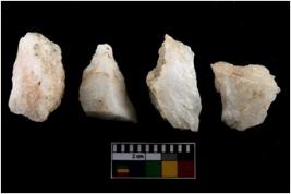 | Description / विवरण | There are n-4 of intact utilized flakes made up of Quartz. Some of them have bulge of percussion and some are flat flakes. |