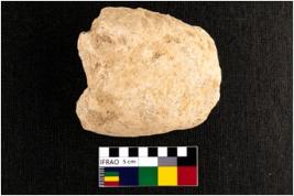 | Description / विवरण | A partially broken specimen of bulbous and oblong shaped muller with oval section. It bears pitted battering marks on surface. It is somewhat smooth in texture due to continuous use. It is made up of quartz. |