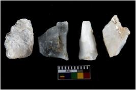 | Description / विवरण | There are n-4 of intact utilized flakes made up of Quartz. Some of them have bulge of percussion and some are flat flakes. |