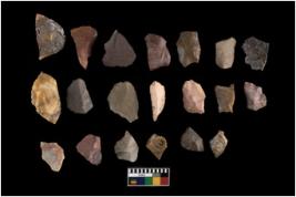 | Description / विवरण | There are n-20 of intact flake cores made up of chert. Some of them have bulge of percussion and some are flat flakes. |