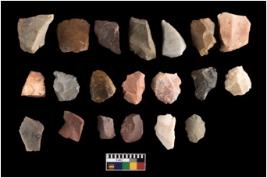| Description / विवरण | There are n-20 of intact flake cores made up of chert. Some of them have bulge of percussion and some are flat flakes. |