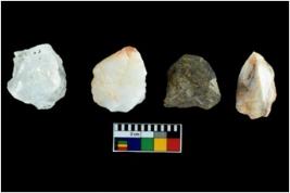 | Description / विवरण | There are n 4 Number of cores, Three of Quartz and one of Chert. Three with crested ridge flakes. |