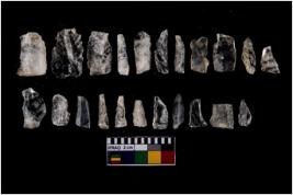 | Description / विवरण | There 20 no. of blades of material quartz. Some of them are points. All the blades are retouched and having sharp edges. |