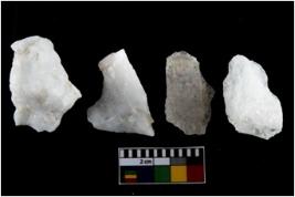 | Description / विवरण | There are n-4 of intact utilized flakes made up of Quartz. Some of them have bulge of percussion and some are flat flakes. |