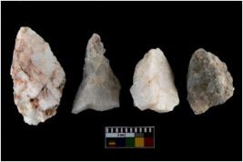 | Description / विवरण | There are n-4 of intact utilized flakes made up of Quartz. Some of them have bulge of percussion and some are flat flakes. |