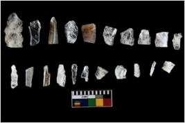 | Description / विवरण | The total number of specimens are n 20 quartz. T The blades have a flat dorsal surface, and double rigdes going parallel to its length. Some of the microliths have steep retouch at their tip. |