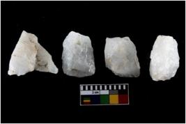 | Description / विवरण | There are n-4 of intact utilized flakes made up of Quartz. Some of them have bulge of percussion and some are flat flakes. |