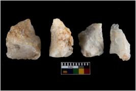 | Description / विवरण | There are n-4 of intact utilized flakes made up of Quartz. Some of them have bulge of percussion and some are flat flakes. |
