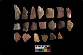 | Description / विवरण | There are n-20 of intact flake cores made up of chert. Some of them have bulge of percussion and some are flat flakes. |