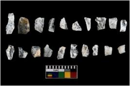 | Description / विवरण | The total number of specimens are n 20 quartz. T The blades have a flat dorsal surface, and double rigdes going parallel to its length. Some of the microliths have steep retouch at their tip. |
