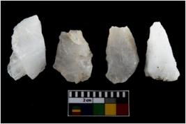 | Description / विवरण | There are n-4 of intact utilized flakes made up of Quartz. Some of them have bulge of percussion and some are flat flakes. |