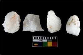 | Description / विवरण | There are n-4 of intact utilized flakes made up of Quartz. Some of them have bulge of percussion and some are flat flakes. |