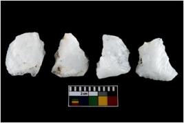 | Description / विवरण | There are n-4 of intact utilized flakes made up of Quartz. Some of them have bulge of percussion and some are flat flakes. |