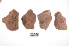 | Description / विवरण | Four worked utilised flakes. Many a times tapering and pointed at one end. |