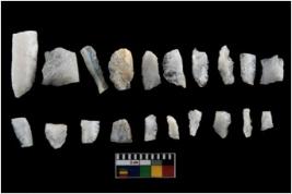 | Description / विवरण | The total number of specimens are n 20 quartz. T The blades have a flat dorsal surface, and double rigdes going parallel to its length. Some of the microliths have steep retouch at their tip. |