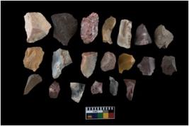 | Description / विवरण | There are n-20 of intact flake cores made up of chert. Some of them have bulge of percussion and some are flat flakes. |
