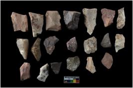 | Description / विवरण | There are n-20 of intact flake cores made up of chert. Some of them have bulge of percussion and some are flat flakes. |