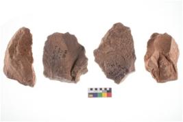 | Description / विवरण | Four worked utilised flakes. Many a times tapering and pointed at one end. |
