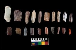 | Description / विवरण | The total number of specimens are n 20 quartz. T The blades have a flat dorsal surface, and double rigdes going parallel to its length. Some of the microliths have steep retouch at their tip. |
