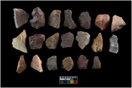 | Description / विवरण | There are n-20 of intact flake cores made up of chert. Some of them have bulge of percussion and some are flat flakes. |