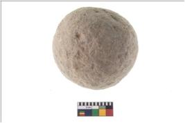 | Description / विवरण | A complete specimen of round shaped hammerstone with battered periphery along with the circumference. It is made up of quartz. It is having rough surface. |