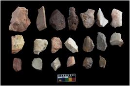| Description / विवरण | There are n-20 of intact flake cores made up of chert. Some of them have bulge of percussion and some are flat flakes. |