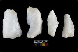 | Description / विवरण | There are n-4 of intact utilized flakes made up of Quartz. Some of them have bulge of percussion and some are flat flakes. |