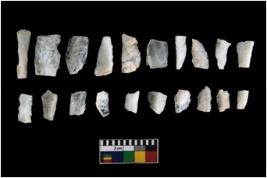 | Description / विवरण | The total number of specimens are n 20 quartz. T The blades have a flat dorsal surface, and double rigdes going parallel to its length. Some of the microliths have steep retouch at their tip. |