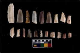 | Description / विवरण | There 20 no. of blades of material chert. Some of them are points. All the blades are retouched and having sharp edges. |