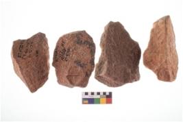 | Description / विवरण | Four worked utilised flakes. Many a times tapering and pointed at one end. |
