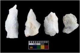 | Description / विवरण | There are n-4 of intact utilized flakes made up of Quartz. Some of them have bulge of percussion and some are flat flakes. |