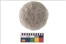 | Description / विवरण | A complete specimen of round shaped sling ball with battered periphery along with the circumference. It is medium in size and with rough surface. It is made up of quartz. It is reddish in colour. |