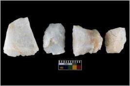 | Description / विवरण | There are n-4 of intact utilized flakes made up of Quartz. Some of them have bulge of percussion and some are flat flakes. |