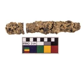 | Description / विवरण | A fragment of iron nail, rusted surface, circular cross section. |