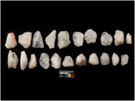 | Description / विवरण | Amongst the antiquities n-21 are flakes of quartz.. All of them are intact flake cores without any trace of crested ridge flakes. |