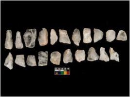 | Description / विवरण | Amongst the antiquities n-21 are flakes of quartz.. All of them are intact flake cores without any trace of crested ridge flakes |