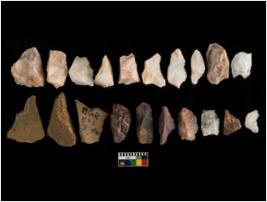 | Description / विवरण | Amongst the antiquities n-6 are flakes of quartz. And n-14 are made of chert. All of them are intact flake cores without any trace of crested ridge flakes. |