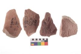 | Description / विवरण | Four worked utilised flakes. Many a times tapering and pointed at one end. |